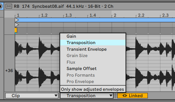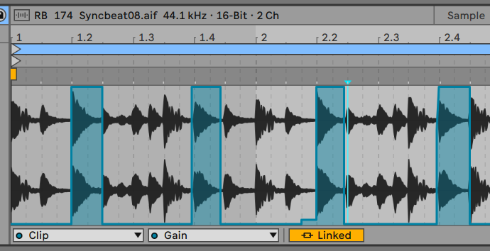 e.g. you have a drum loop sample where you really like the sound of the backbeat, but you don’t want to have the whole beat playing. That is a great example of how you can use clip envelopes.
