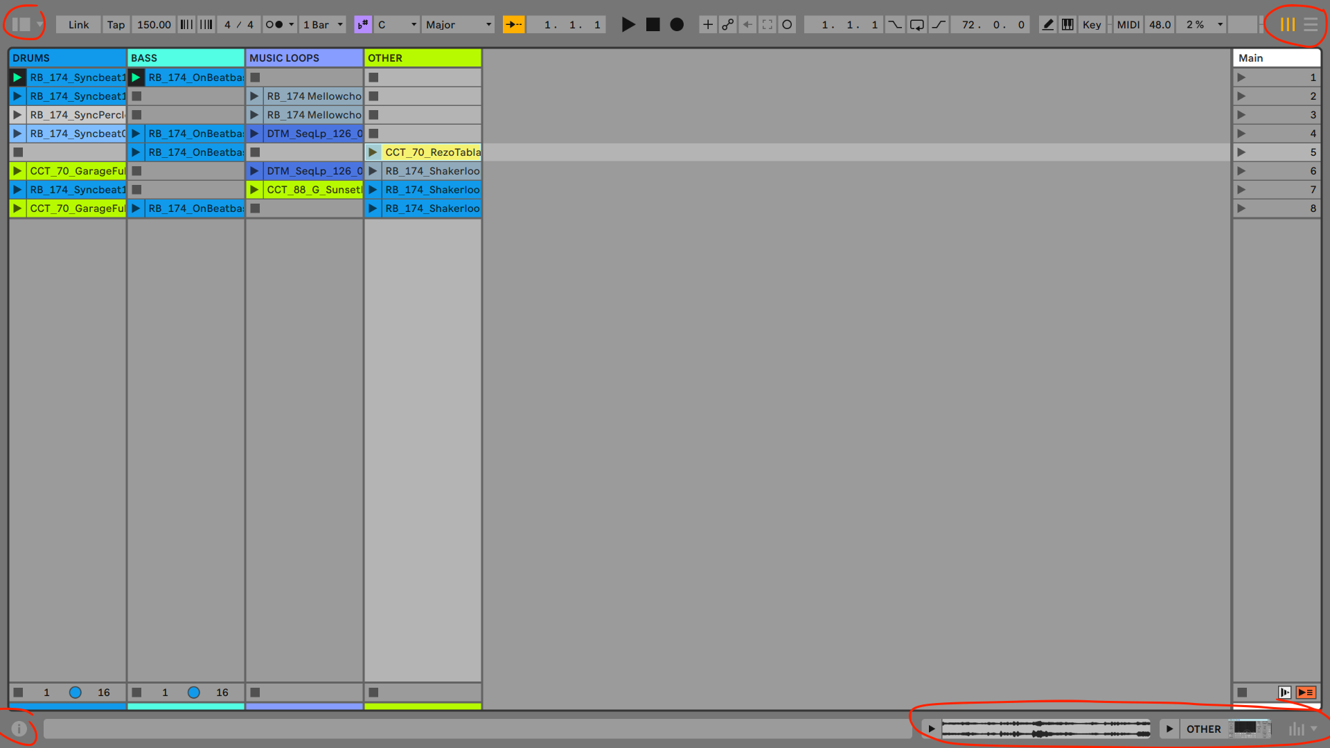 Session / Arrangement View (Top right)