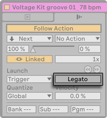 Unless all the clips involved play the same sample (differing by clip settings only), you might hear dropouts when launching clips in Legato Mode. This happens because you are unexpectedly jumping to a point in the sample that Live has had no chance to preload from disk in advance. You can remedy this situation by engaging Clip RAM Mode for the clips in question.