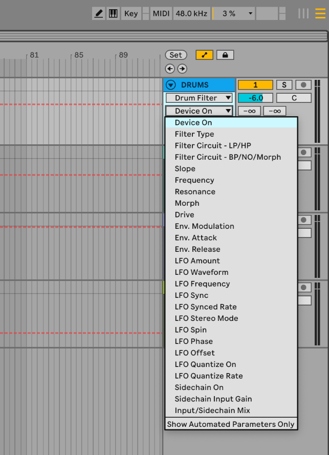 Pick any parameter of the drop down menu. First is the device or section, second is any available parameter of that device