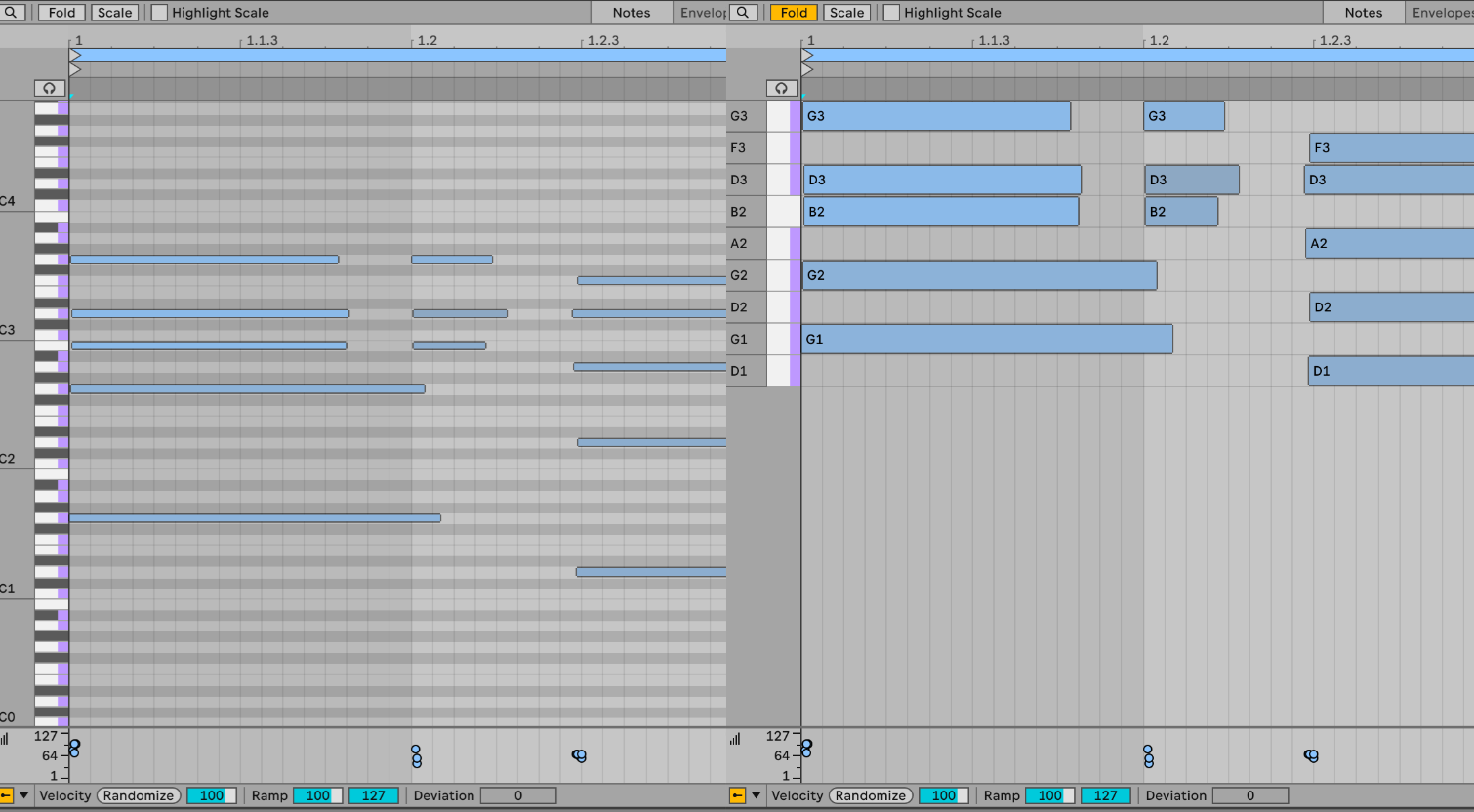 Ableton 12 has a feature where you define a scale like C Major or Eb Minor, like we saw earlier on the website tutorial. You have these options: