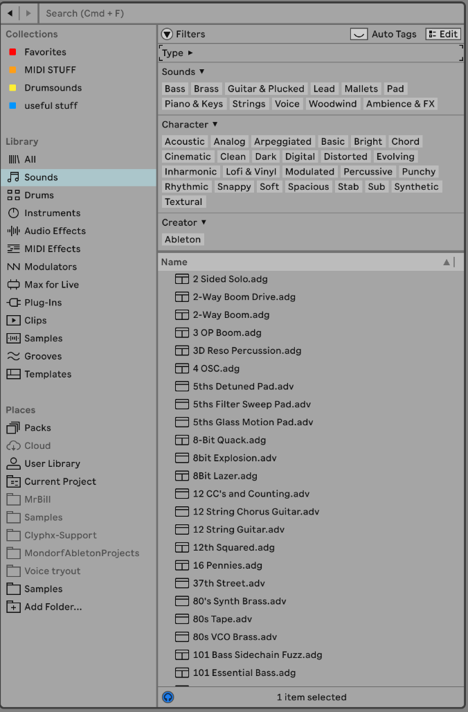 Given this information a synthesiser or sampler can generate a sound. You’ll find these instruments in Ableton unter Sounds and Instruments: